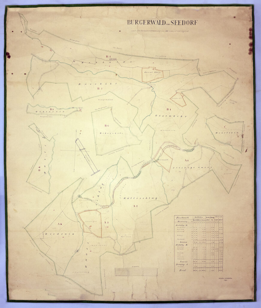 Plan über die Burgerwaldungen der Holzmarchegemeinde Seedorf, 1850
